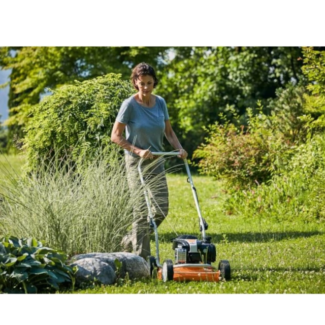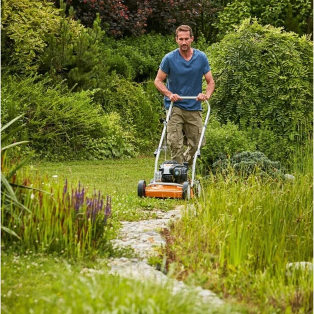 El cortacésped de gasolina STIHL RM 2 R es un cortacésped una robusta carcasa metálica para céspedes de tamaño medio. Tiene una anchura de corte de 46 cm y está equipada con un motor ReadyStart. Otras características tensado rápido Quick-Fix, un manillar plegable para ahorrar espacio y un ajuste de altura de corte de cuatro ejes.