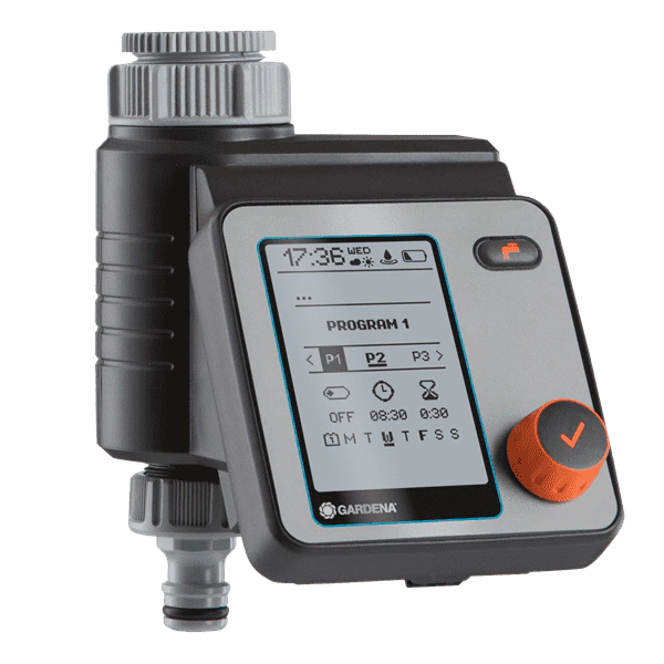 Con el Programador de riego Master de GARDENA, el riego se puede planificar de manera particularmente flexible e individual. Se pueden crear hasta seis horarios diferentes e independientes. El control funciona con baterías, está conectado directamente al grifo y puede operarse fácilmente utilizando solo un interruptor giratorio y de presión para seleccionar los datos y confirmarlos. Una pantalla LCD completamente legible y totalmente gráfica muestra todas las configuraciones de un vistazo. El menú se puede seleccionar en 10 idiomas. La unidad operativa resistente a la intemperie se puede quitar. Es fácil adaptar centralmente la duración del riego o detener todo el riego durante una fase de mal tiempo. La unidad es ideal para el control automático del distribuidor de agua GARDENA. El Water Control Master también se puede utilizar en combinación con un sensor de humedad del suelo GARDENA.